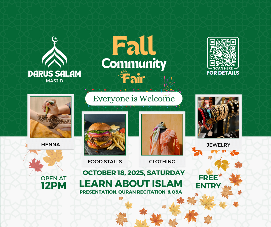 We’re excited to invite everyone to Darus Salam Masjid’s Community Fair on Saturday, October 18, 2025!